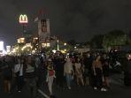 Ribuan warga terus berbondong-bondong dan berkumpul di kawasan Tugu Jogja. Jalan menuju arah Tugu Jogja di Jembatan Gondolayu ditutup.