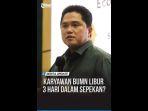 Erick Ingin Karyawan BUMN Libur 3 Hari Dalam Sepekan