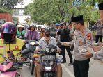 Jajaran Polres Metro Jakarta Utara menggelar aksi sosial dengan membagikan takjil dan paket sembako di kawasan Penjaringan, Jakarta Utara.