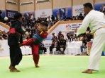 Pertarungan pancak silat dalam rangka melahirkan generasi penerus atlet baru di kejuaraan KONI-Bayan Championship II 2025 di GOR Segiri, Samarinda.